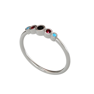 Siyah zirkon, kök yakut ve akuamarin 14 ayar beyaz altın yüzük