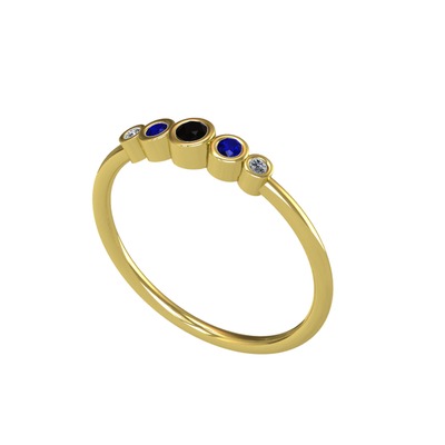 Siyah zirkon, lab safir ve pırlanta 18 ayar altın yüzük (0.03 karat)