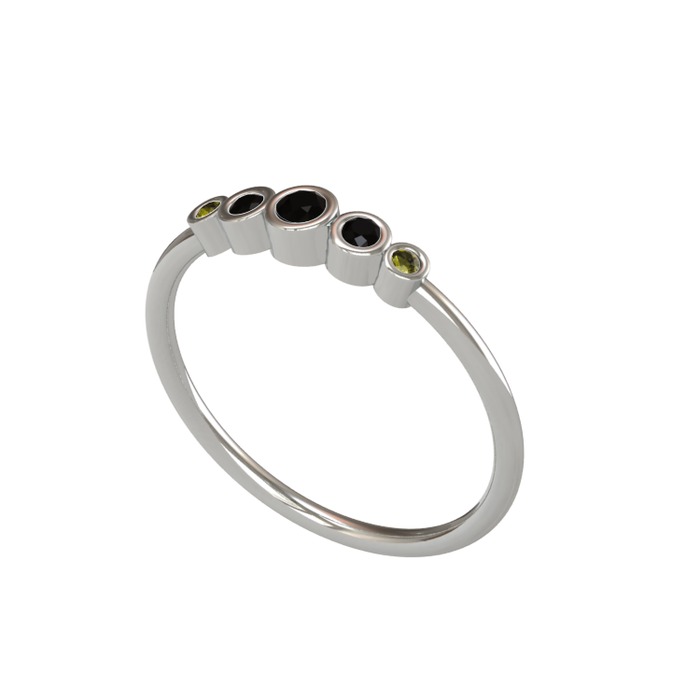 Siyah zirkon ve peridot 14 ayar beyaz altın yüzük
