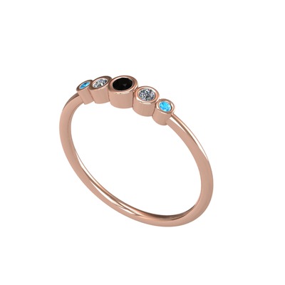 Siyah zirkon, pırlanta ve akuamarin 18 ayar rose altın yüzük (0.072 karat)