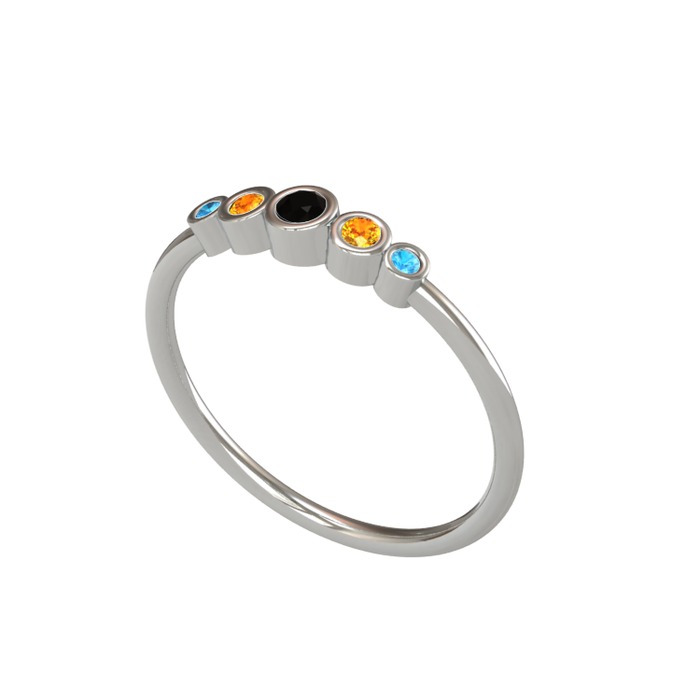 Siyah zirkon, sitrin ve akuamarin 14 ayar beyaz altın yüzük