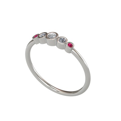 Swarovski, elmas ve rodolit garnet 14 ayar beyaz altın yüzük (0.072 karat)