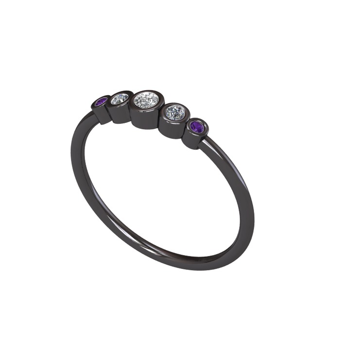 Swarovski, pırlanta ve ametist 925 ayar siyah rodyum kaplama gümüş yüzük (0.072 karat)