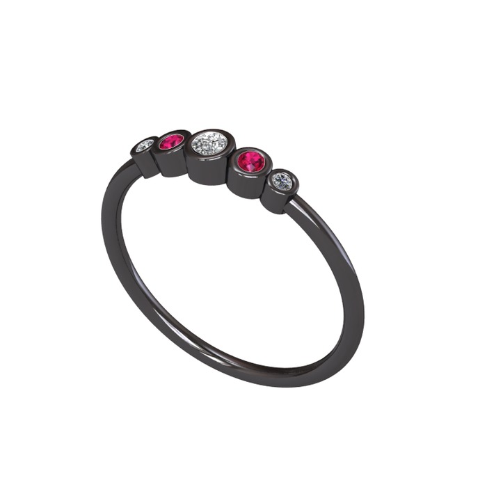 Swarovski, rodolit garnet ve elmas 925 ayar siyah rodyum kaplama gümüş yüzük (0.03 karat)