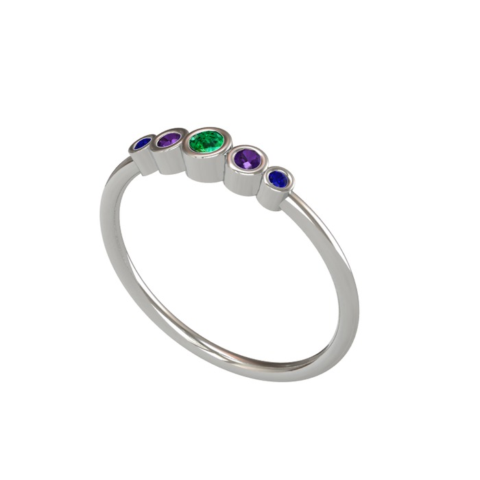 Yeşil kuvars, ametist ve lab safir 8 ayar beyaz altın yüzük