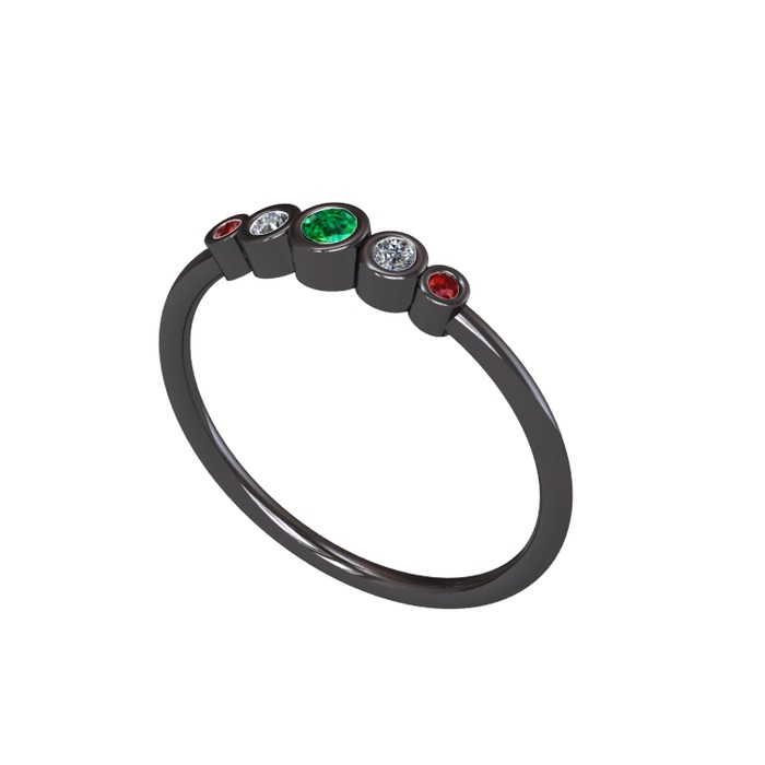 Yeşil kuvars, elmas ve garnet 925 ayar siyah rodyum kaplama gümüş yüzük (0.072 karat)