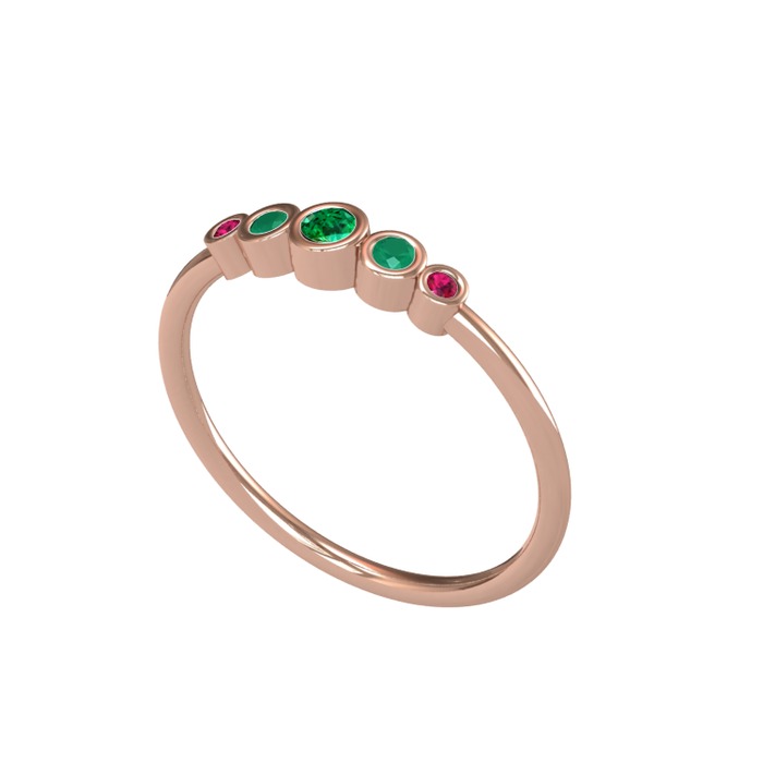 Yeşil kuvars, kök zümrüt ve rodolit garnet 8 ayar rose altın yüzük