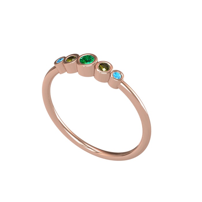 Yeşil kuvars, peridot ve akuamarin 18 ayar rose altın yüzük