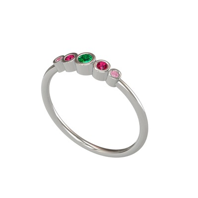 Yeşil kuvars, rodolit garnet ve pembe kuvars 8 ayar beyaz altın yüzük