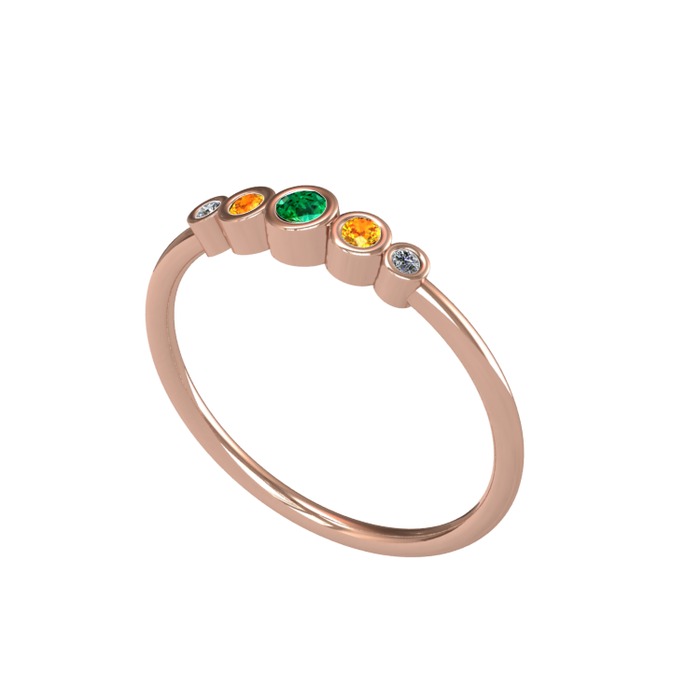 Yeşil kuvars, sitrin ve pırlanta 14 ayar rose altın yüzük (0.03 karat)