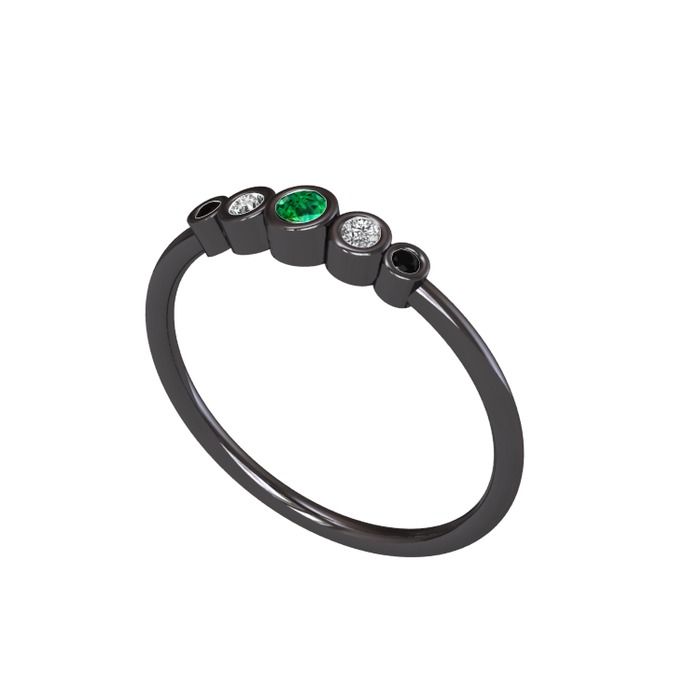 Yeşil kuvars, swarovski ve siyah zirkon 925 ayar siyah rodyum kaplama gümüş yüzük