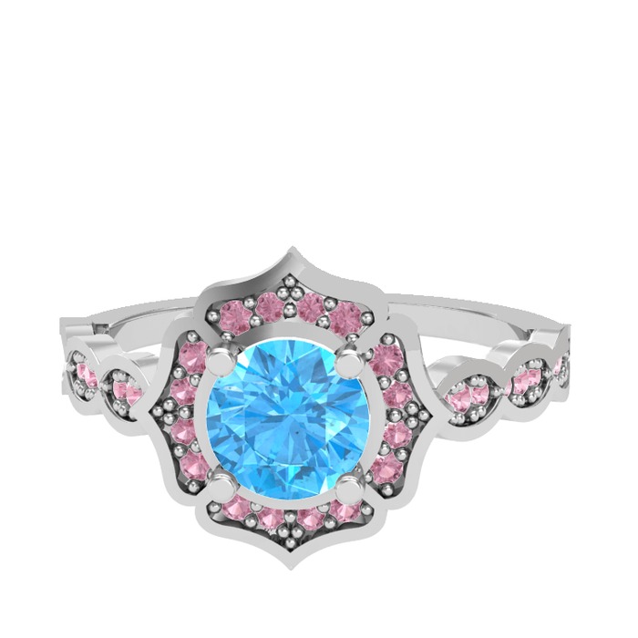Akuamarin ve pembe kuvars 925 ayar gümüş yüzük