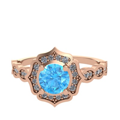 Akuamarin ve pırlanta 14 ayar rose altın yüzük (0.374 karat)