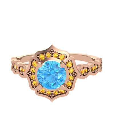 Akuamarin ve sitrin 14 ayar rose altın yüzük
