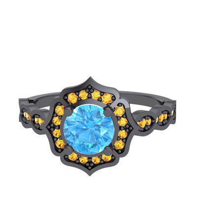 Akuamarin ve sitrin 925 ayar siyah rodyum kaplama gümüş yüzük