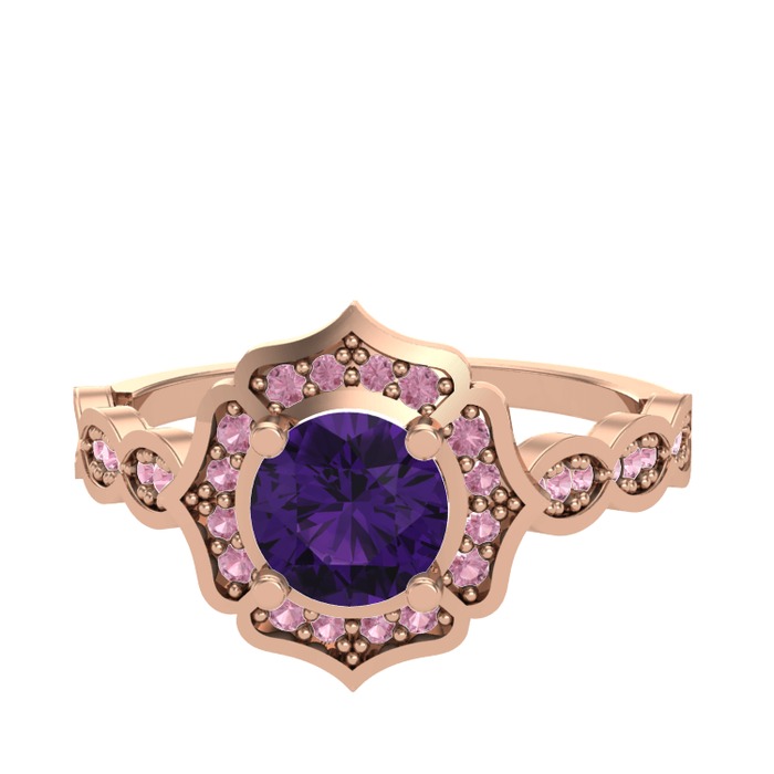 Ametist ve pembe kuvars 925 ayar rose altın kaplama gümüş yüzük