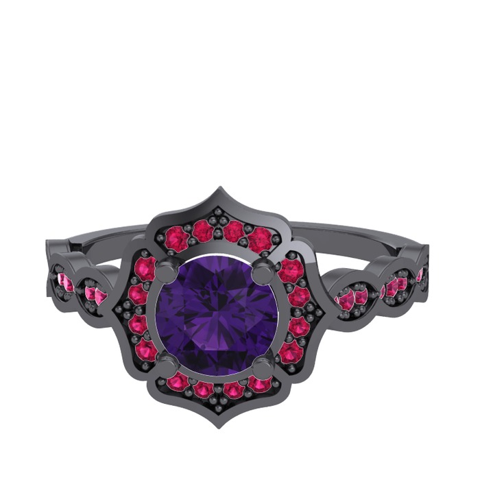 Ametist ve rodolit garnet 925 ayar siyah rodyum kaplama gümüş yüzük