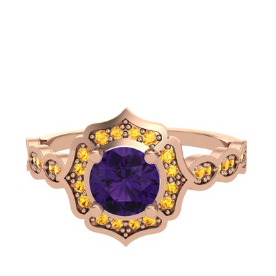 Ametist ve sitrin 925 ayar rose altın kaplama gümüş yüzük