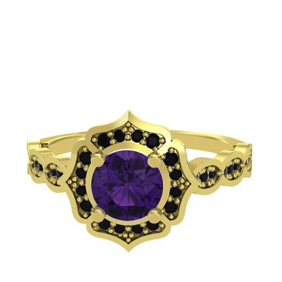 Ametist ve siyah zirkon 14 ayar altın yüzük