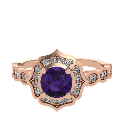 Ametist ve swarovski 925 ayar rose altın kaplama gümüş yüzük