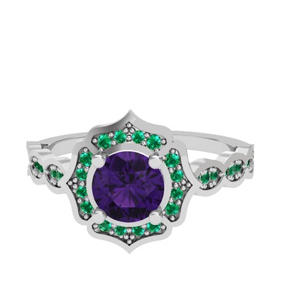 Ametist ve yeşil kuvars 18 ayar beyaz altın yüzük