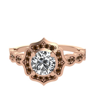 Beyaz zirkon ve dumanlı kuvars 18 ayar rose altın yüzük