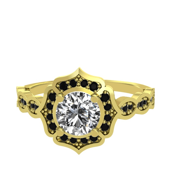 Beyaz zirkon ve siyah zirkon 8 ayar altın yüzük