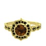 Dumanlı kuvars ve siyah zirkon 14 ayar altın yüzük