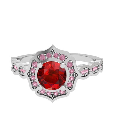 Garnet ve pembe kuvars 8 ayar beyaz altın yüzük