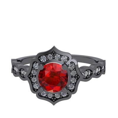 Garnet ve pırlanta 925 ayar siyah rodyum kaplama gümüş yüzük (0.374 karat)