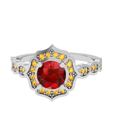 Garnet ve sitrin 8 ayar beyaz altın yüzük
