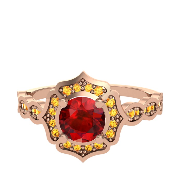 Garnet ve sitrin 8 ayar rose altın yüzük