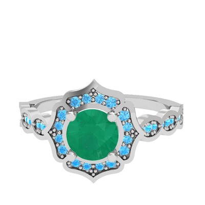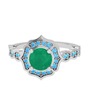 Kök zümrüt ve akuamarin 8 ayar beyaz altın yüzük