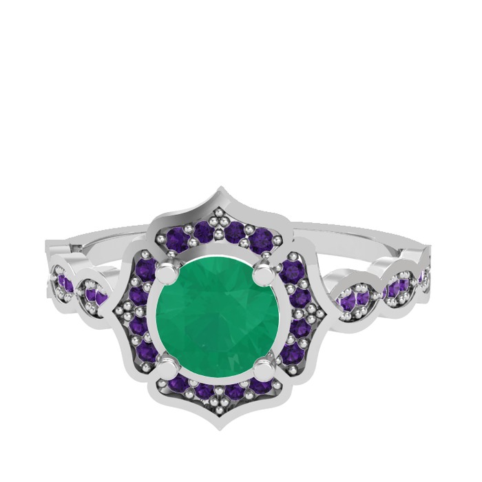 Kök zümrüt ve ametist 18 ayar beyaz altın yüzük