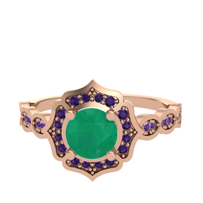 Kök zümrüt ve ametist 8 ayar rose altın yüzük