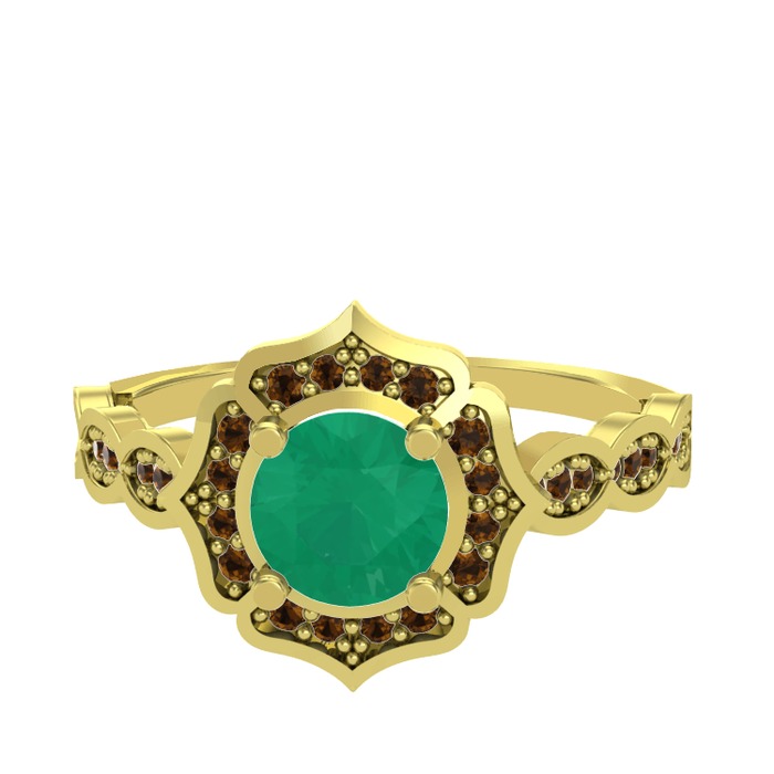 Kök zümrüt ve dumanlı kuvars 14 ayar altın yüzük