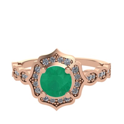 Kök zümrüt ve pırlanta 14 ayar rose altın yüzük (0.374 karat)