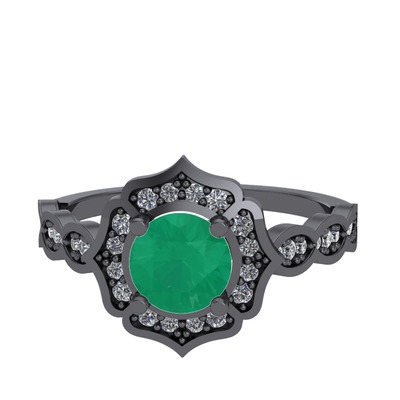 Kök zümrüt ve pırlanta 925 ayar siyah rodyum kaplama gümüş yüzük (0.374 karat)