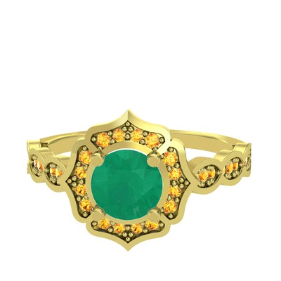 Kök zümrüt ve sitrin 18 ayar altın yüzük