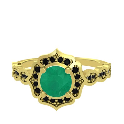 Kök zümrüt ve siyah zirkon 8 ayar altın yüzük