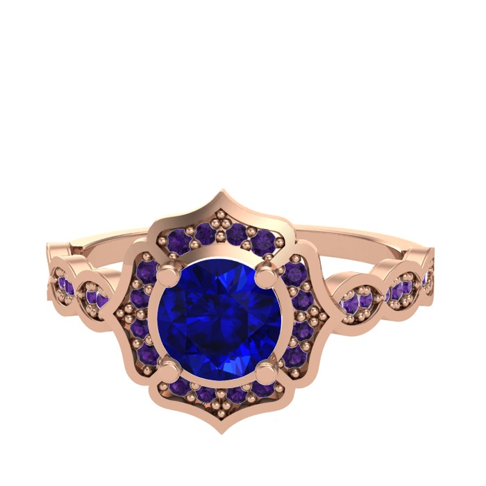 Lab safir ve ametist 14 ayar rose altın yüzük