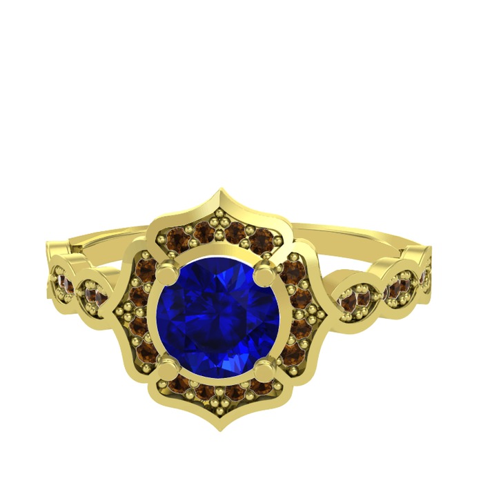Lab safir ve dumanlı kuvars 925 ayar altın kaplama gümüş yüzük