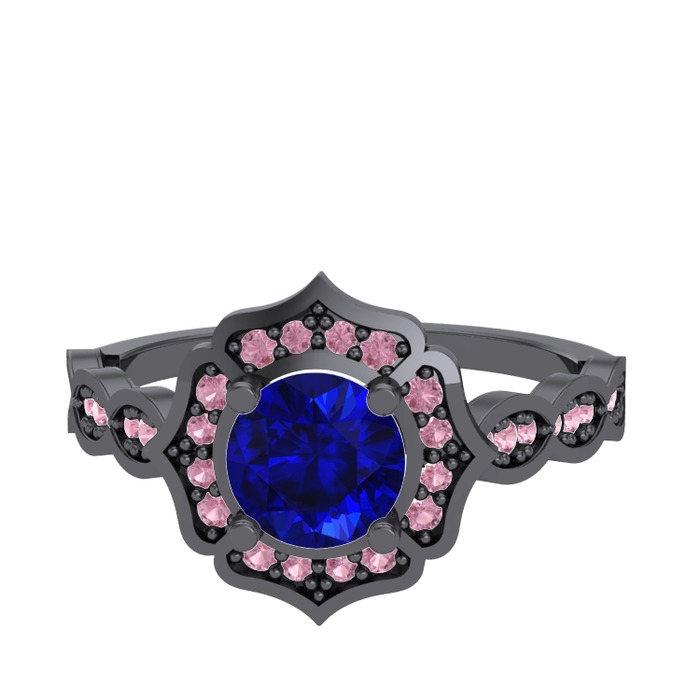 Lab safir ve pembe kuvars 925 ayar siyah rodyum kaplama gümüş yüzük