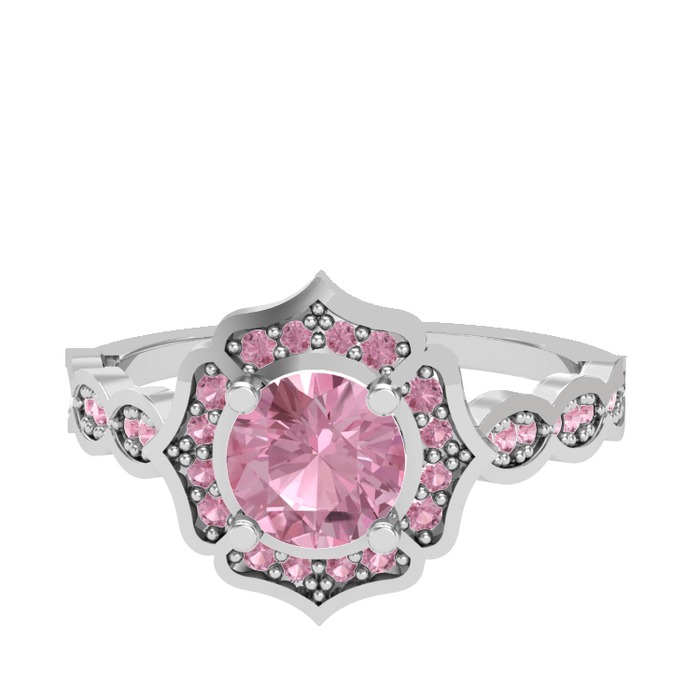 Pembe kuvars 8 ayar beyaz altın yüzük