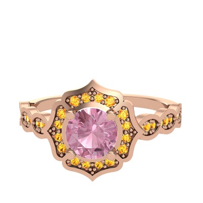 Pembe kuvars ve sitrin 925 ayar rose altın kaplama gümüş yüzük