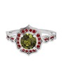 Peridot ve garnet 18 ayar beyaz altın yüzük