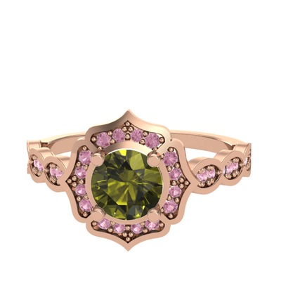 Peridot ve pembe kuvars 925 ayar rose altın kaplama gümüş yüzük