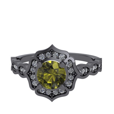 Peridot ve pırlanta 925 ayar siyah rodyum kaplama gümüş yüzük (0.374 karat)