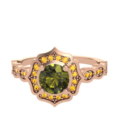 Peridot ve sitrin 18 ayar rose altın yüzük