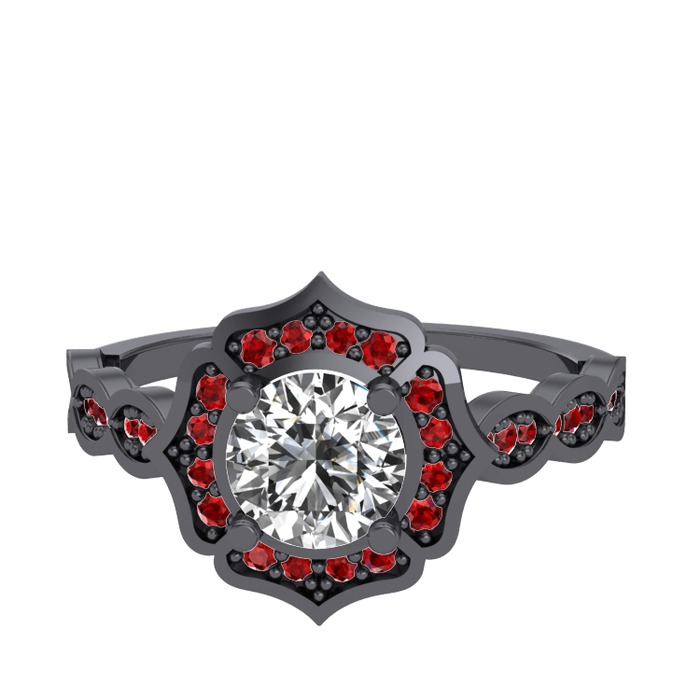 Pırlanta ve garnet 925 ayar siyah rodyum kaplama gümüş yüzük (0.92 karat)